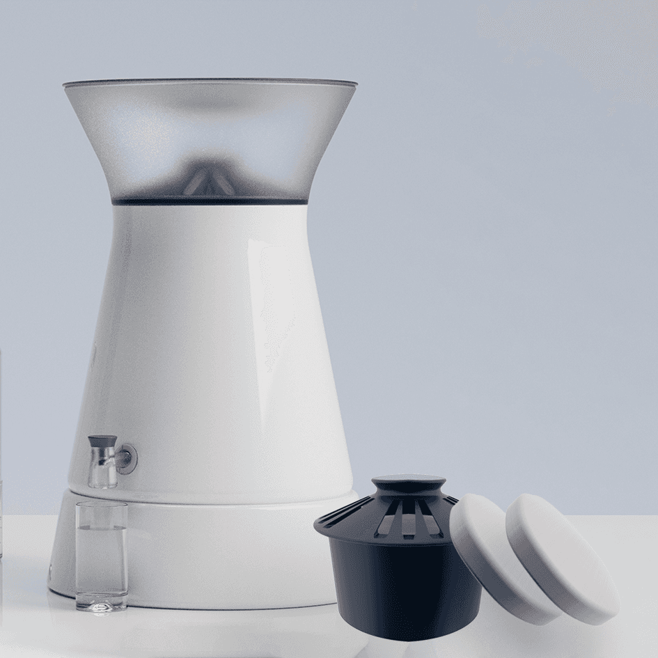 Matla-Neer is a gravity-fed filtration system designed to function without electricity or pressure, making it well-suited for low-resource environments. Impure water is poured into the top chamber and gradually passes through a natural filter media, before being collected in a ceramic storage container below.